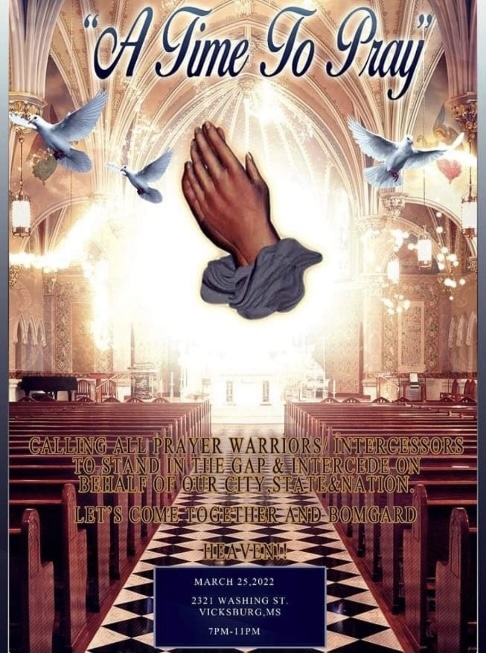 A prayer for the city of Vicksburg will take place on Friday from 7 p.m. to 11 p.m.