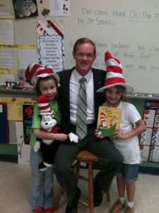 Across the nation, teachers, teenagers, librarians, politicians, actors, athletes, parents, grandparents, and others participate in Read Across America activities to bring reading excitement to children of all ages. Governors, mayors, and other elected officials recognize the role reading plays in their communities with proclamations and floor statements. Athletes and actors issue reading challenges to young readers. And educators and principals seem to be more than happy to dye their hair green or be duct-taped to a wall to boost their students’ enthusiasm for reading.