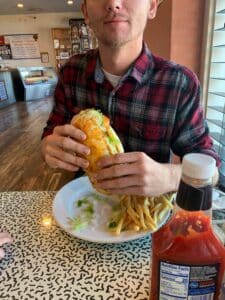 My fiancé is the type of blue collar man that laughs at the idea of eating a vegetable. This man ate this entire sandwich that was stacked with lettuce, tomato, cucumber, bell pepper, and onion. I took a bite as well, and this was the best sandwich I’ve ever had. It was so light, and the crunch factor from all those vegetables was unbeatable. I was grateful for the way they snuck an entire salad on this sandwich, and placed it so delicately he didn’t notice.