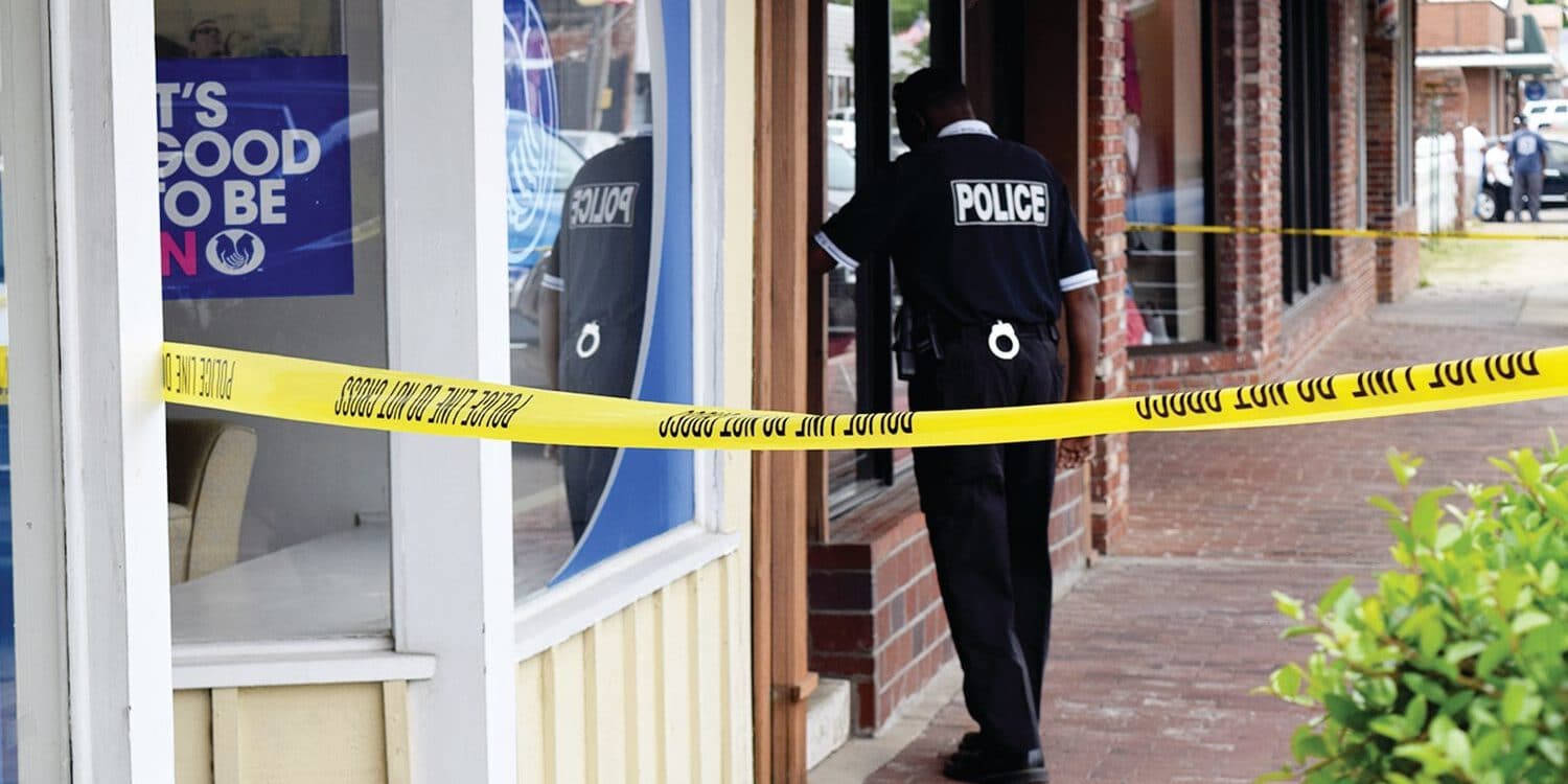 The suspects appeared to have come from across the street In the alleyway between the former A-Z Beauty Supply store and The Crown Restaurant. They fled in the same direction, leaving in a dark-colored BMW.