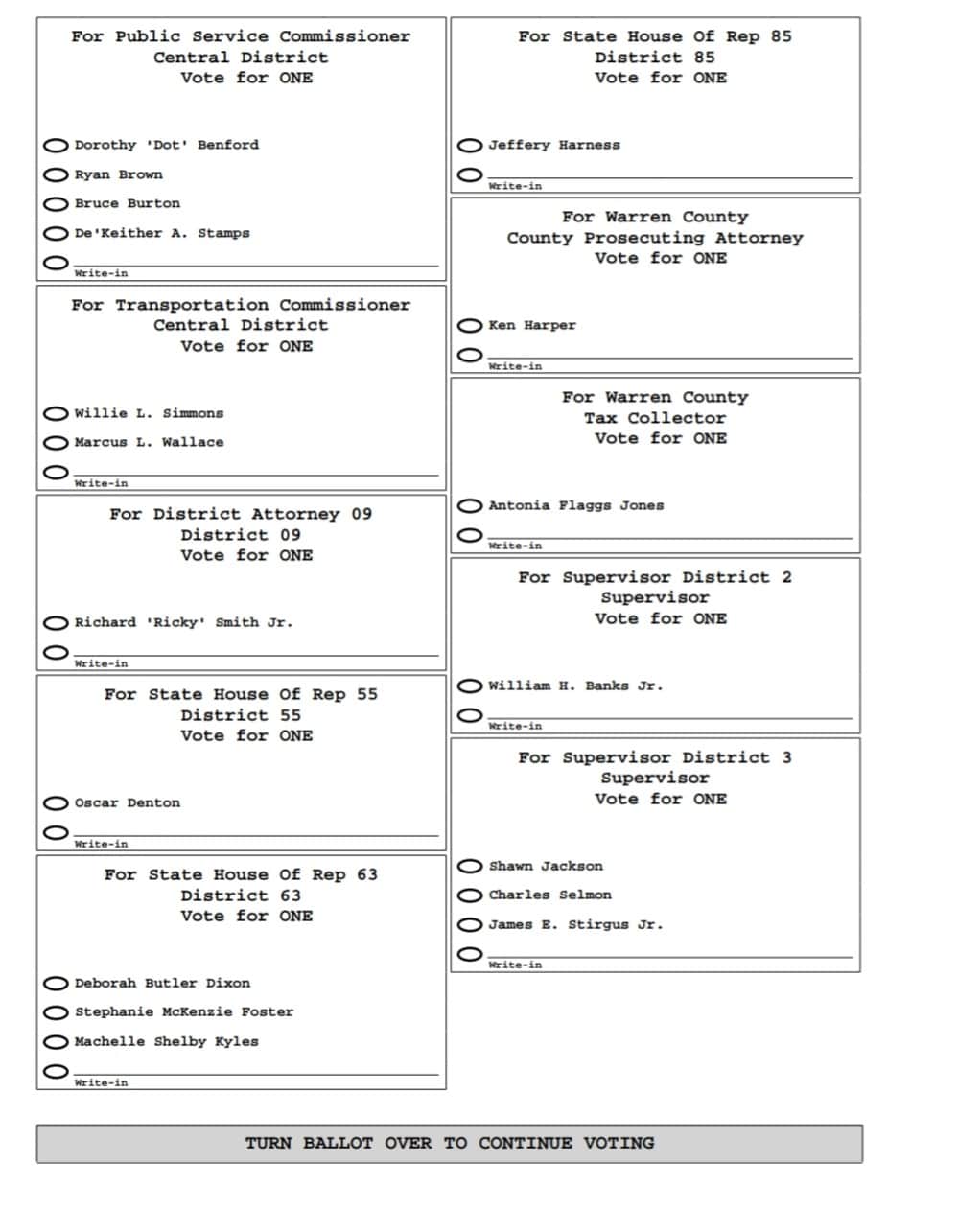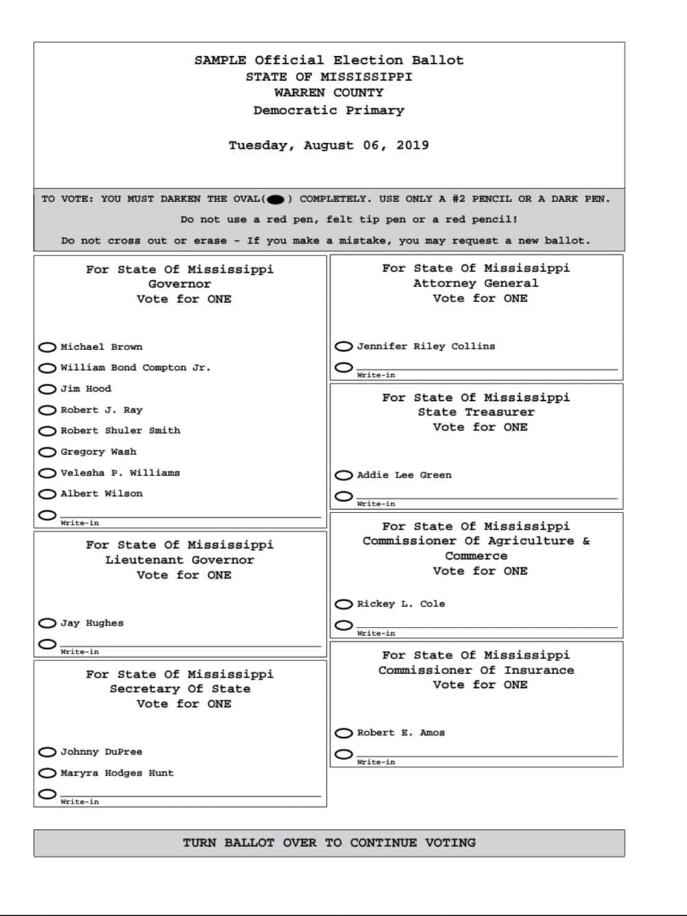 Here is the sample ballot for the Democratic Party (click to enlarge):