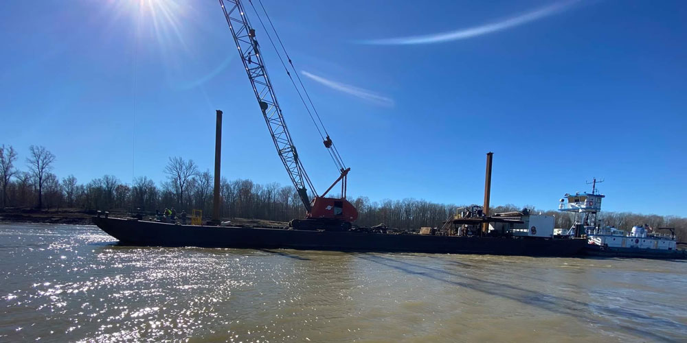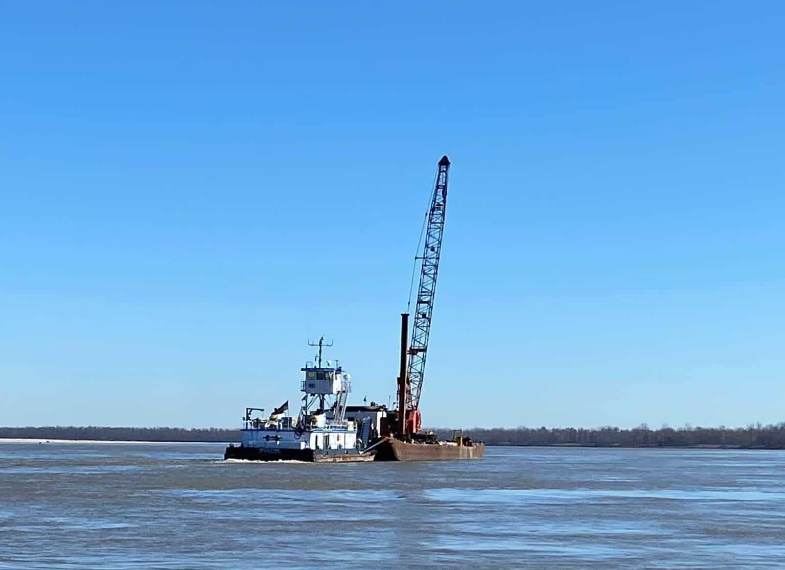 Monday, a group put together by Mercy Search and Rescue used a spud barge as a platform to send sonar imaging equipment deep into the river. The barge and the towboat pushing it were provided by Vicksburg based Big River Shipbuilders.