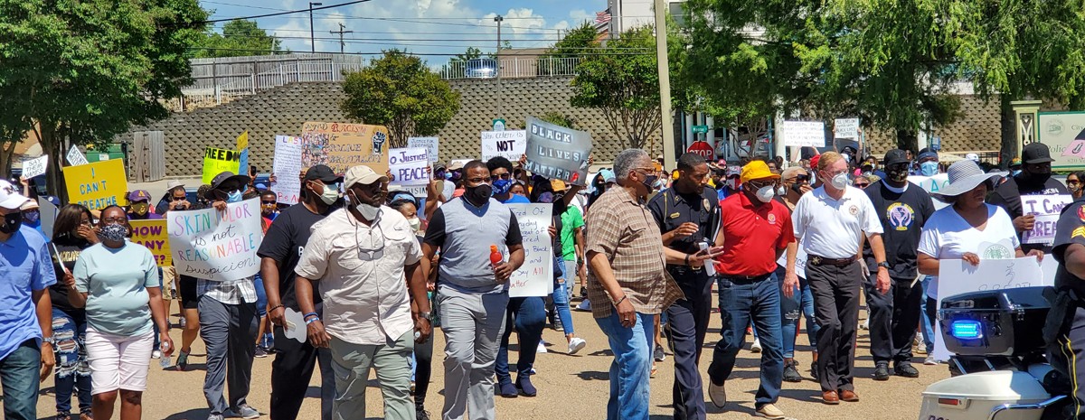 Roughly 400 people showed up to march, with Vicksburg Mayor George Flaggs Jr., Vicksburg Police Chief Milton Moore and Warren County Sheriff Martin Pace in the lead.