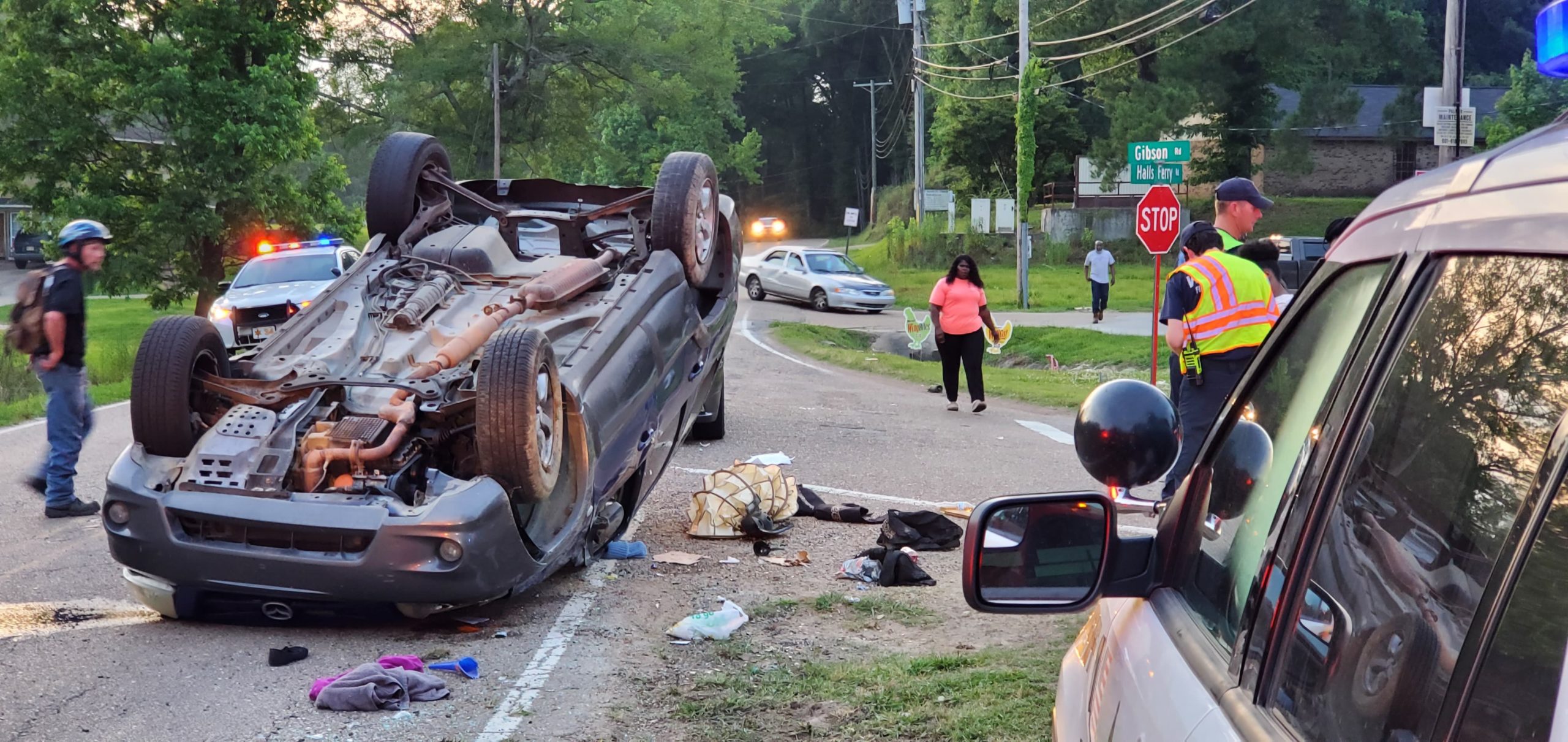 A single vehicle accident at Gibson and Halls Ferry roads has left the car overturned in the intersection.