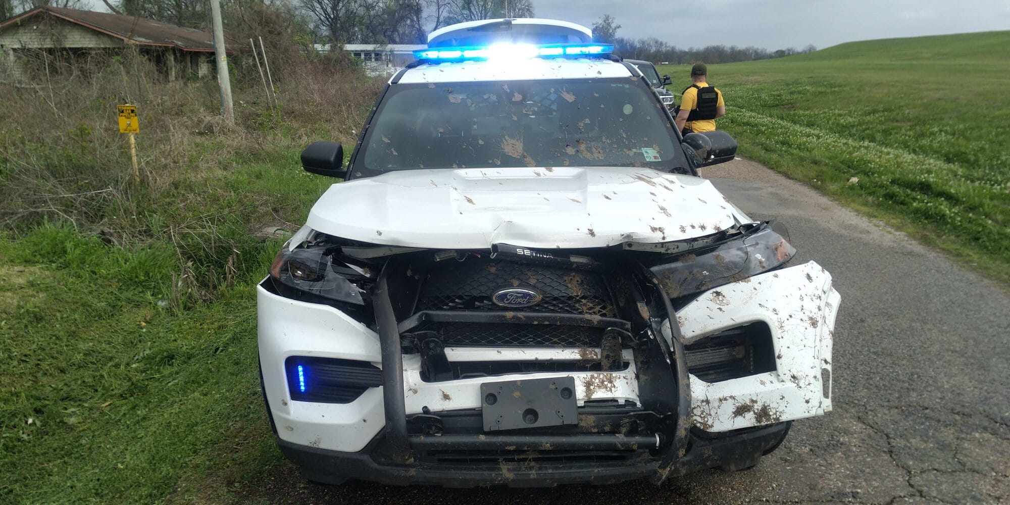 Officer John Jimenez was waiting for the chase to make its way to him. When the stolen vehicle made its approach, it side-swiped the Oak Grove unit. West Carroll Sheriff and Oak Grove units continued the chase through town at speeds of over 100 MPH.