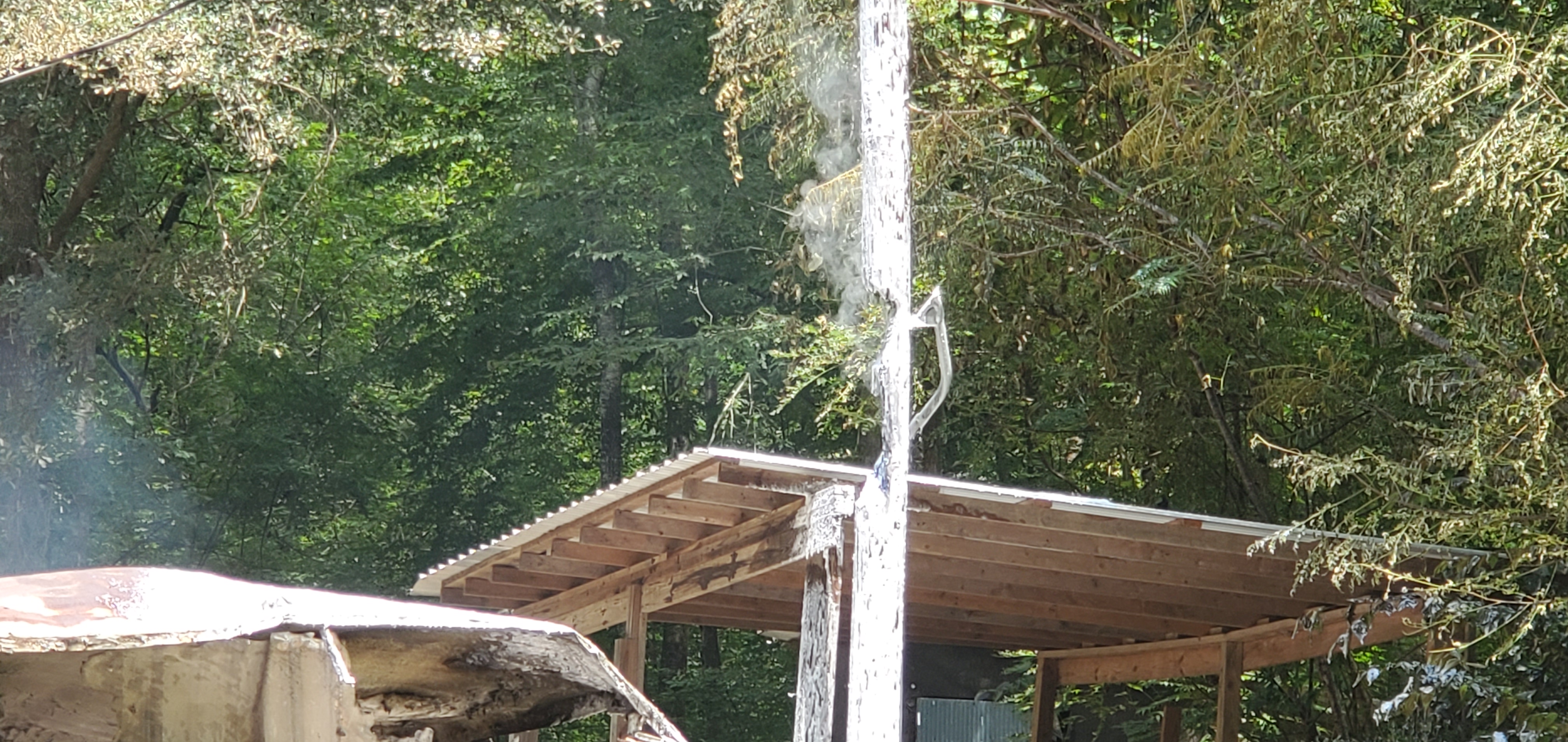 Way out in a remote part of the county, a trailer burned to the ground overnight. Today, just after noon, someone discovered the still smoldering ruins and called 911.