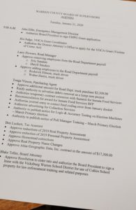 The Warren County Board of Supervisors began the process of managing the county’s business today.