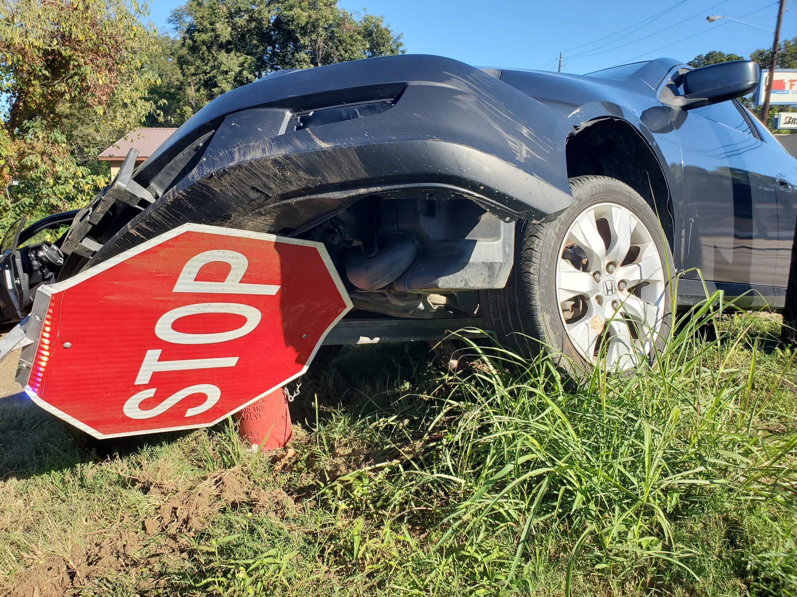 The suspect then jumped out of the vehicle and ran south with the car still in motion. He is described as a black male, roughly 5 feet 10 inches tall, wearing a blue and orange jumpsuit. The Honda crashed into a fire hydrant at Vanderbilt and Clay after taking out a stop sign and a street sign.