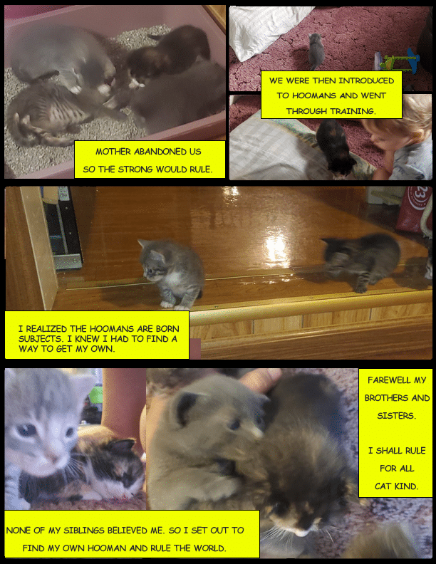 Hooman: My friends, Nichole and Johnathan, recently purchased a house beside a lake. A neighborhood stray had decided to give birth to a litter underneath their home. As it was told to me, the mother was neglecting the young and not caring for them. My friends took it upon themselves to nurse the newborn kittens and find them homes.