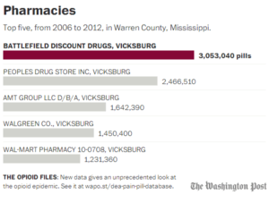 The data reveal the depth of the prescription opioid epidemic in every state and county in the nation down to individual pharmacies. In Mississippi and in Warren County: