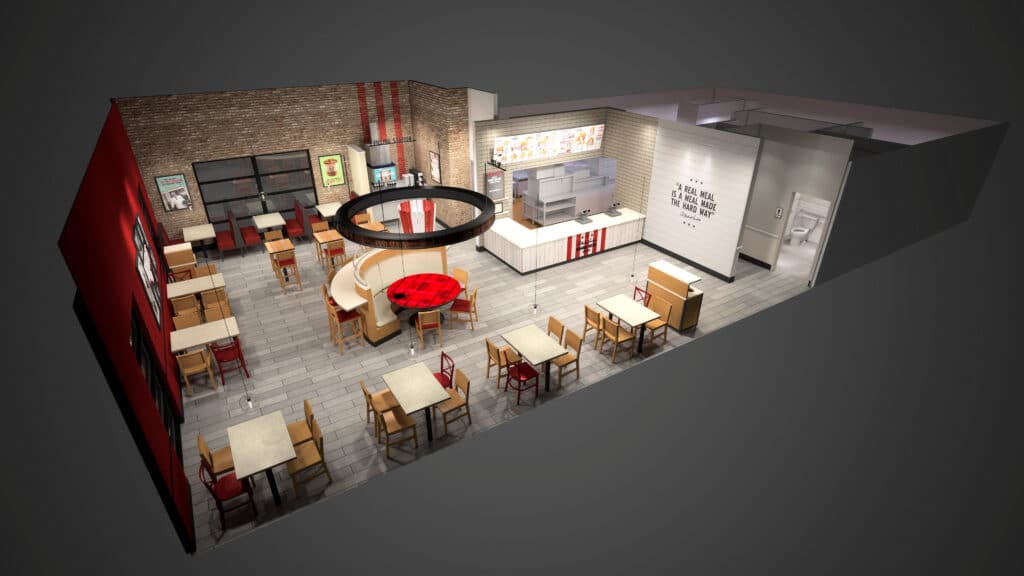 Service and dining area floorplan for the new KFC coming to South Frontage Road (courtesy of Miller Riles)