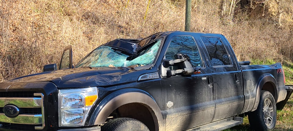 The southbound vehicle, a 2016 Ford F250, according to Sheriff Martin Pace, “had the passenger compartment crushed by a falling tree. The driver and passenger were both treated by paramedics on the scene but were not were transported.”