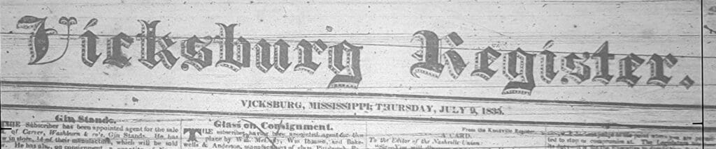 The original report from the Vicksburg Register, July 9, 1835, was written on July 7, 1835