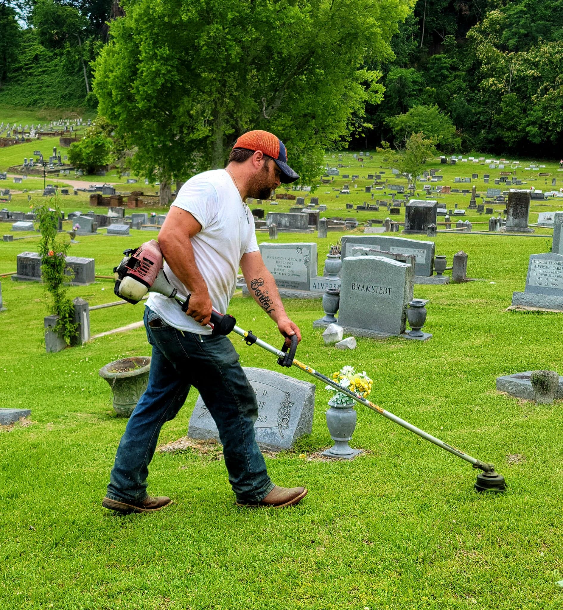 David Brown was working a weed eater and said “You can look at our equipment and see if it’s us or not. Our tractors don’t have any damage. If you hit one of these heavy stones it’s going to leave a mark. We try very hard to respect where we work, just like it was our family.”