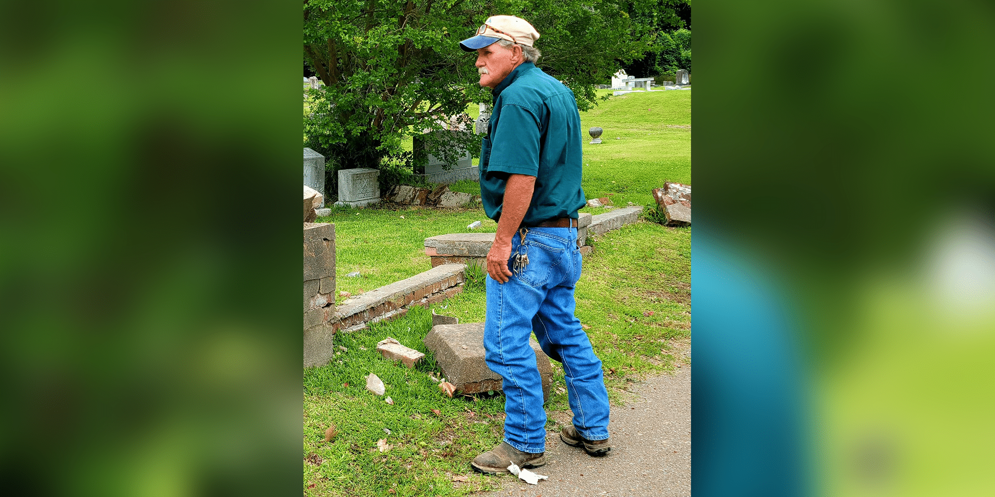 Familiar names and plots in the cemetery were damaged with no discernable intent apparent. “It was probably teenagers. They knocked over stones and broke a water line, leaving it running for no reason. Just to be mean,” explained Moore. “They’ve mentioned letting me buy trail cameras and talked about putting video cameras in here, but so far we haven’t gotten anything.”