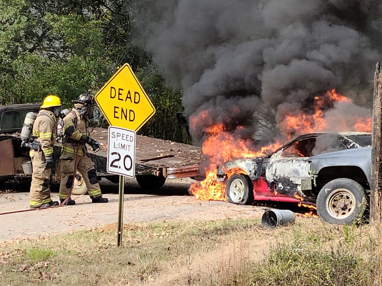 Vehicle fire on Redhawk Road creates plume of smoke seen across town