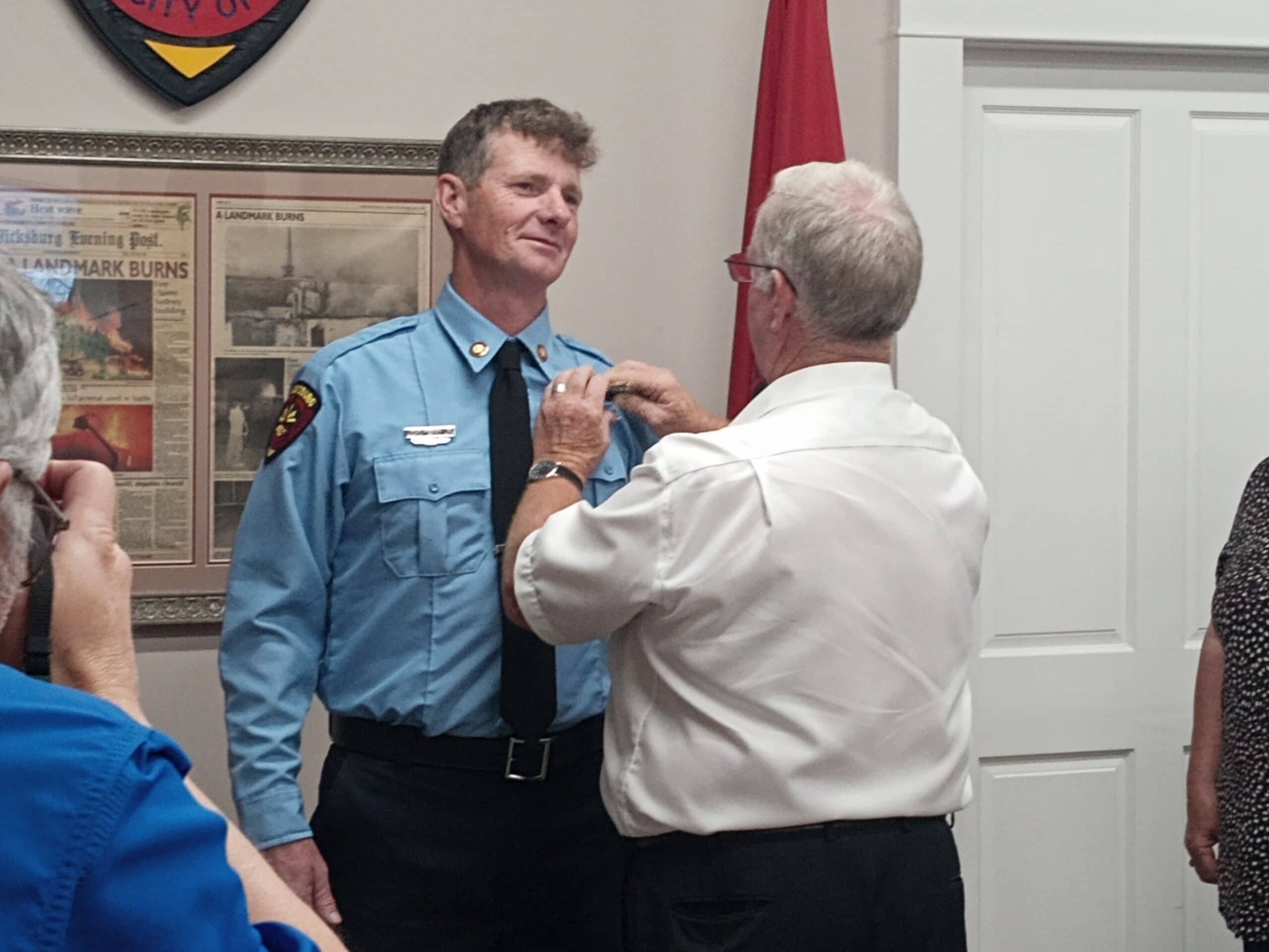 Following in the footsteps of his father before him, John Terry, Jr. was promoted to Lieutenant on Wednesday in a pinning ceremony at Vicksburg Fire Department.