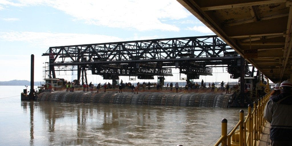 The U.S. Army Corps of Engineers Vicksburg District’s Mat Sinking Unit (photo courtesy USACE)