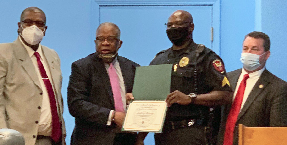 Monday morning at the Board of Mayor and Alderman meeting, the City of Vicksburg recognized Sgt. Bobby Jones for his 20 years in law enforcement with the Vicksburg Police Department.