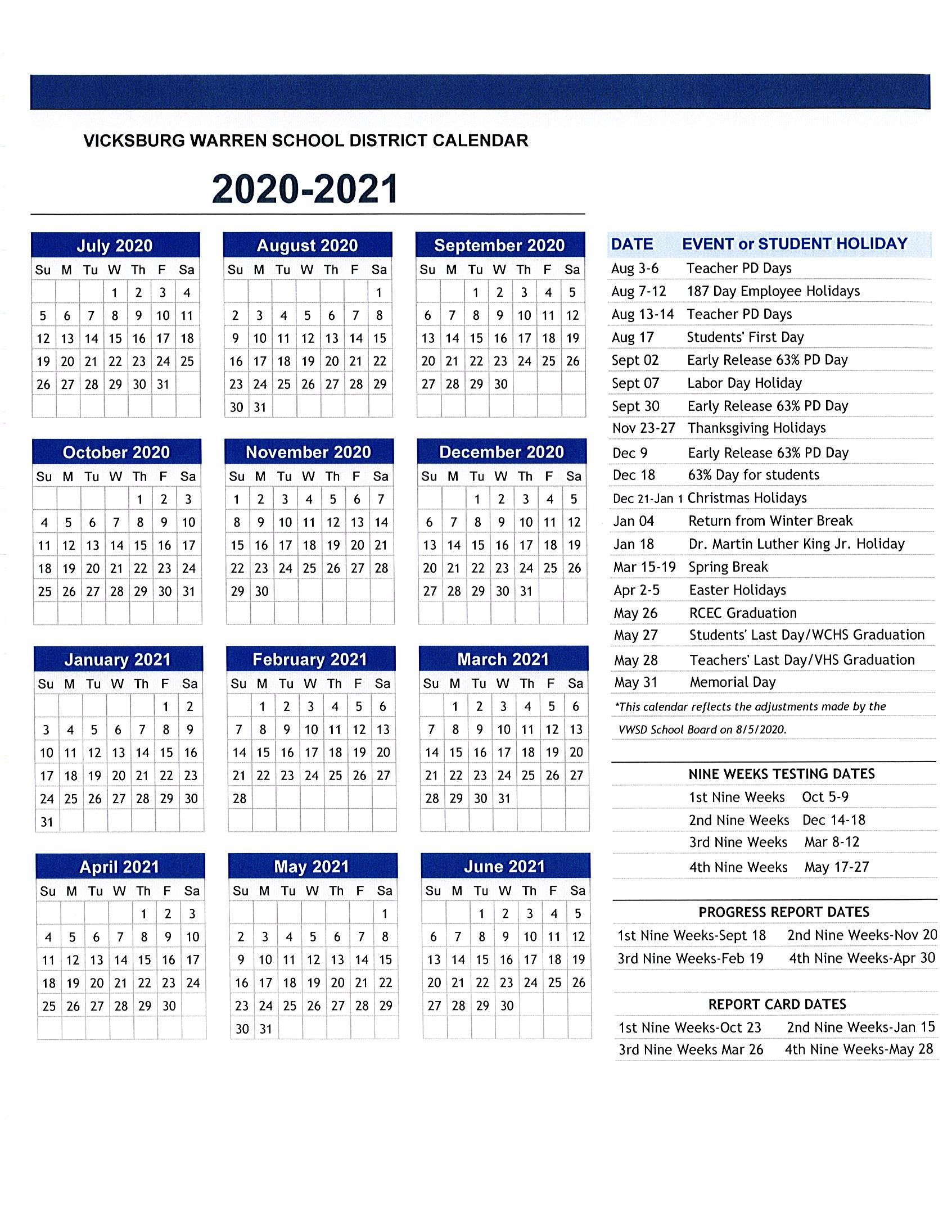 Please see the calendar below for additional information. As always, the VWSD remains committed to the safety and well-being of its students and staff and looks forward to welcoming students back on Aug. 17, 2020.