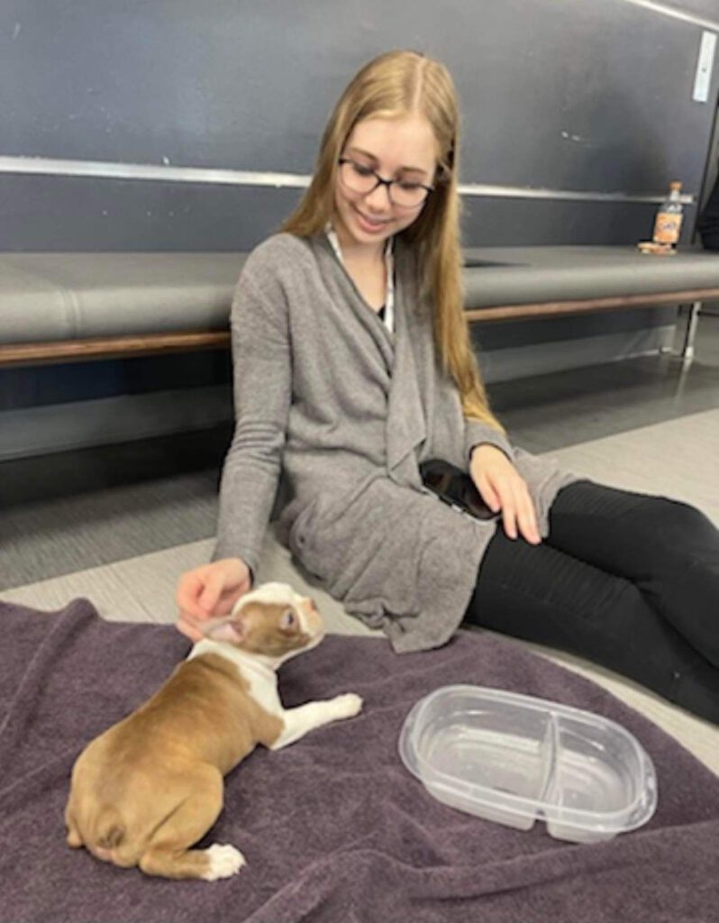 Sadie’s owner, Kelda Bailess, says that she and her family are, “smitten,” with Sadie. At only 4 months old, Sadie has already “provided emotional support for students at River City Early College after a tragedy.” When Bailess’s daughter had Covid, Sadie refused to leave her side. Sadie also offered her calming presence to a family member who was healing from a kidney transplant. “She’s proving that she’s got a huge heart. She senses when others need support,” Bailess said.