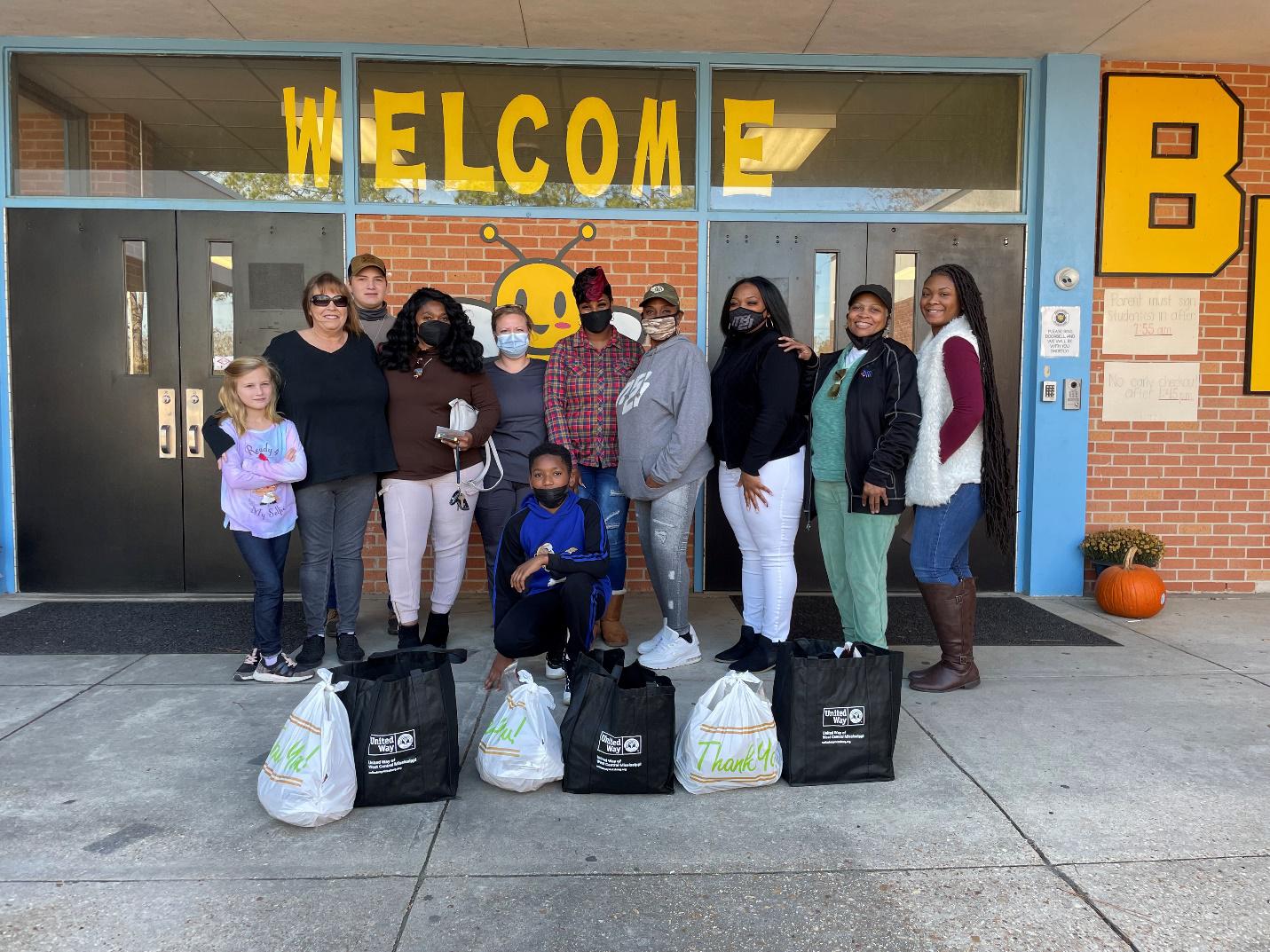 - The Butler Family with recipients at Beechwood Elementary School. Butler family members, starting from left: Deborah (in brown shirt, fourth from left), Demetra (in grey sweatshirt), Shante, Sharon and Shacaria. (Courtesy of United Way of West Central Mississippi)