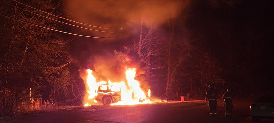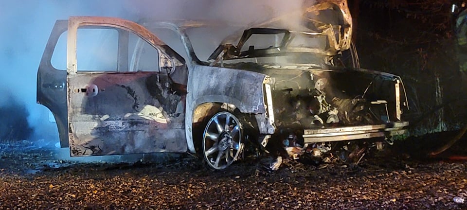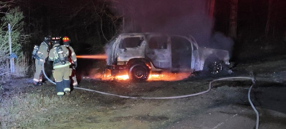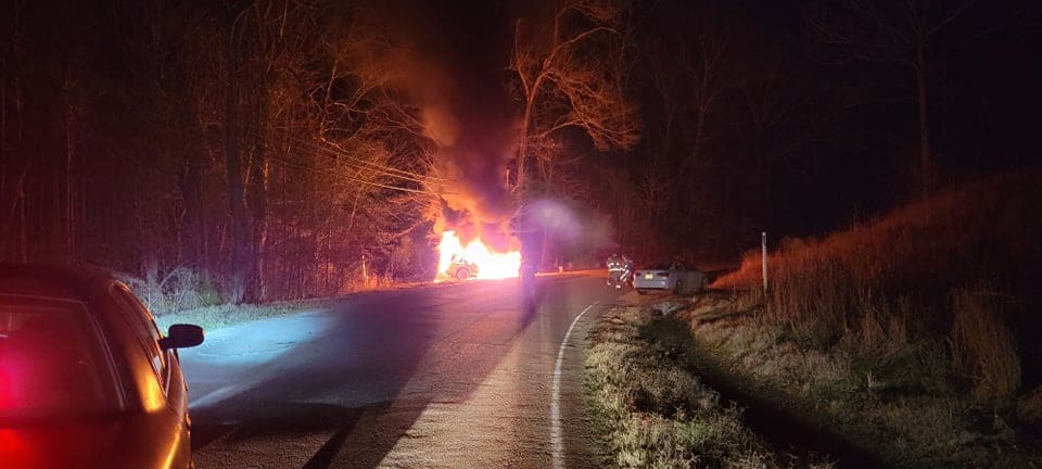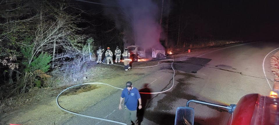 Warren County firefighters responded to a fully involved vehicle fire in the 5900 – 6000 block of Halls Ferry Road at 7:39 p.m. on Friday.