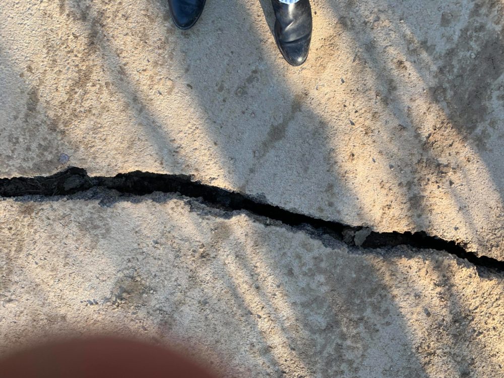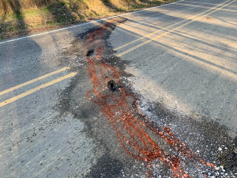The recent rainfall has undermined the roadway.