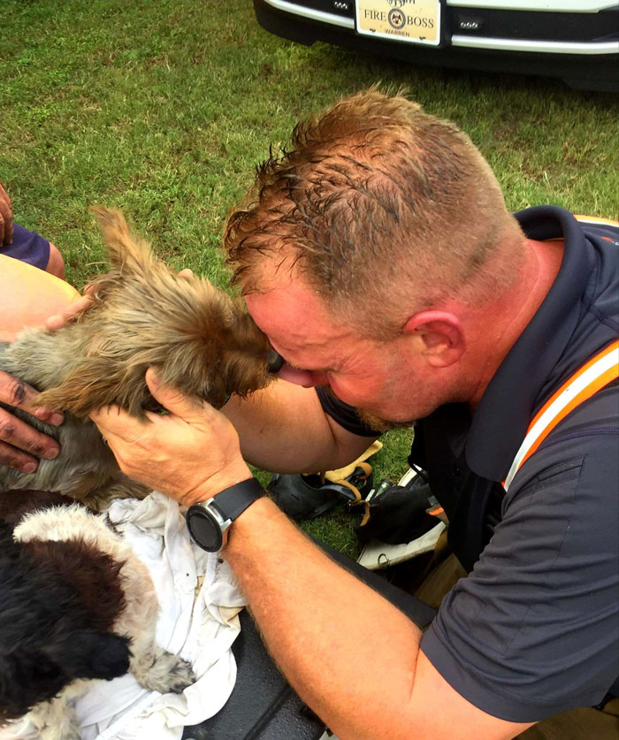 Doodles thanks Fire Coordinator Jerry “Fire Boss” Briggs for saving him from the blaze (photo by Thomas Parker).