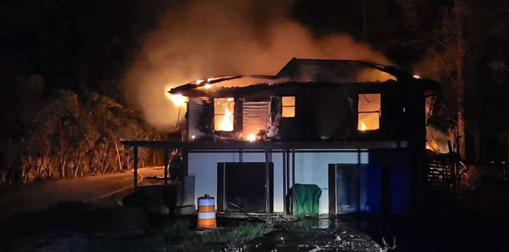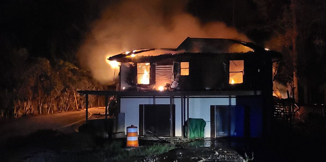 Around 11:50 p.m. Thursday, the fire rekindled and flared up, completely engulfing the home in flames and destroying it. Firefighters were on the scene until the early morning hours Friday extinguishing the flames.
