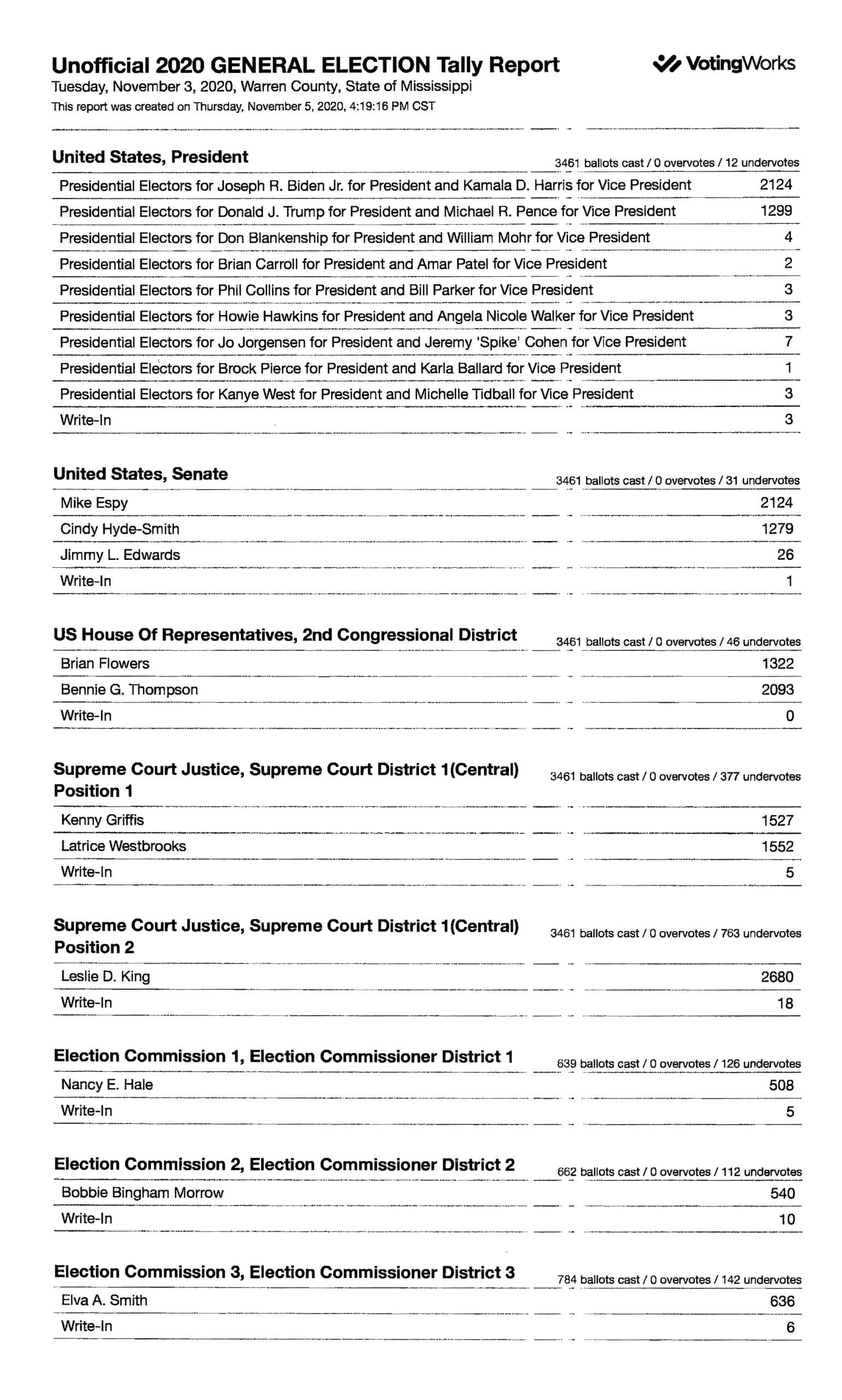 The Warren County Circuit Clerk’s Office has released absentee vote tallies for the county.