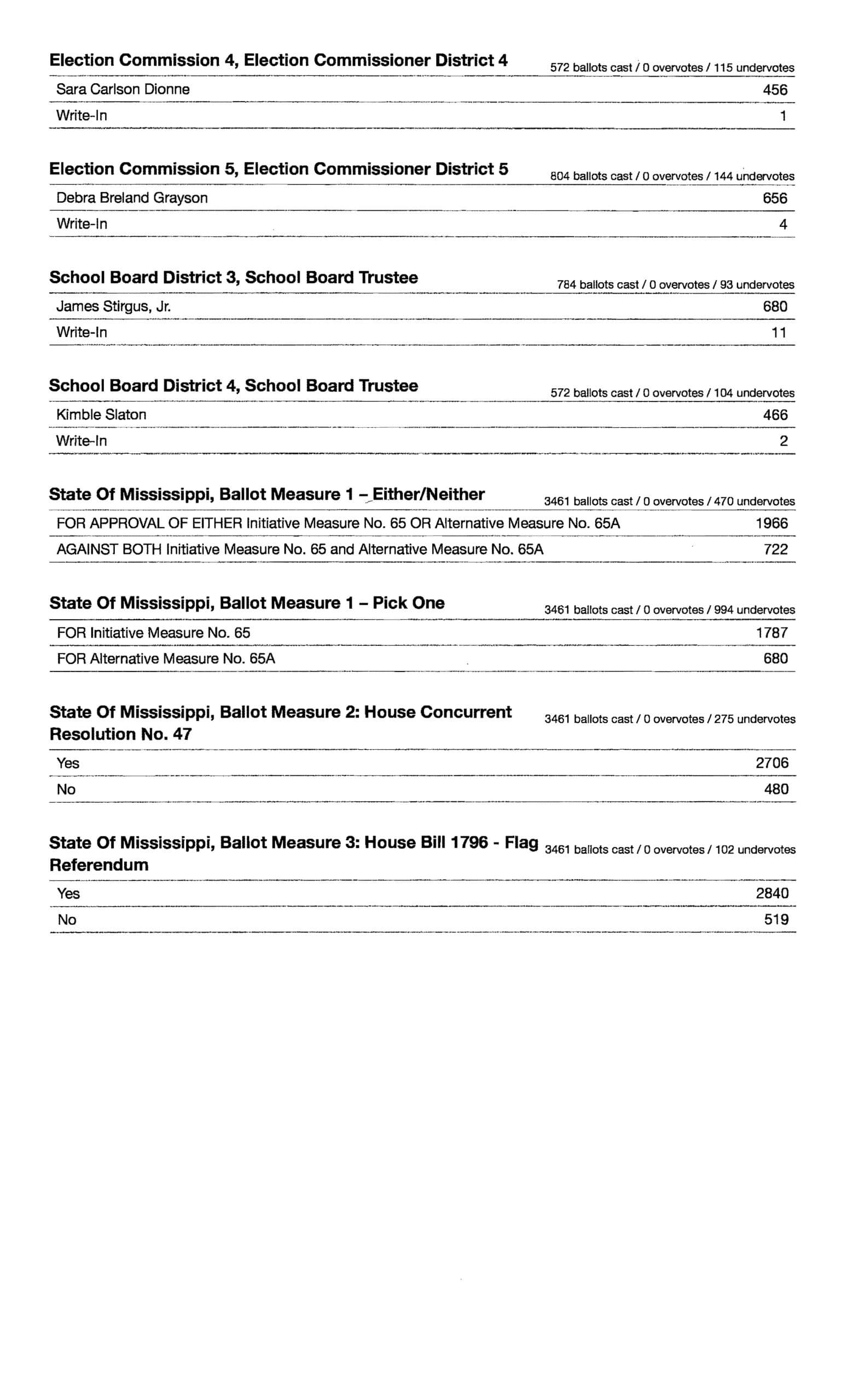 Click here to see the machine tally completed the evening of the election.