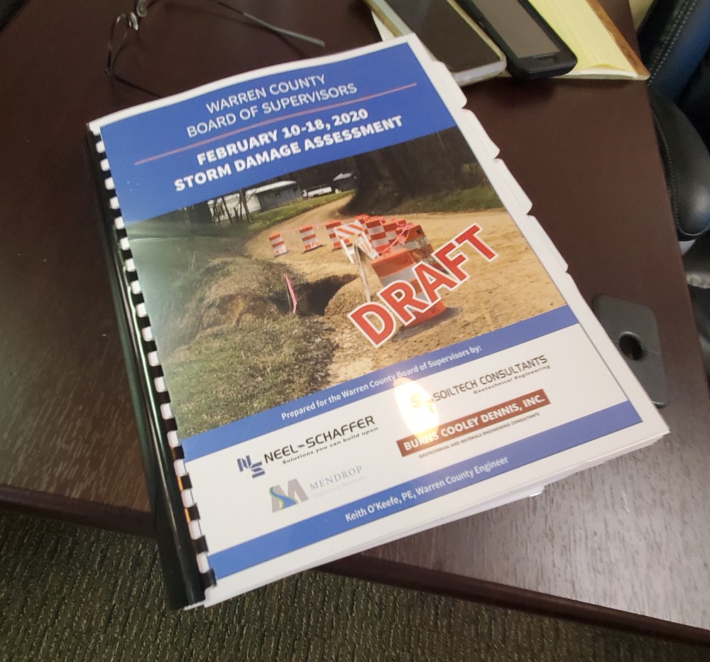County employed engineers have spent several weeks assessing road damage in Warren County from heavy rainstorms from Feb 10 through Feb. 18 this year. They’ve logged hundreds of man hours to make the most thorough evaluation of the county’s roads in many years.