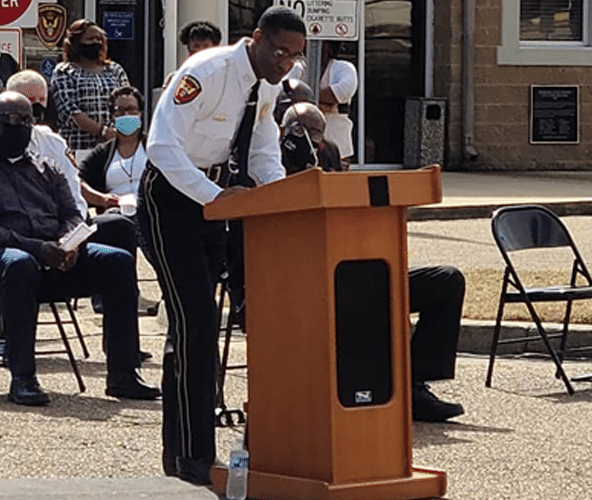 General Robert Crear speaks at the Vicksburg Police ceremony unveiling the “Lucky Seven” monument in Vicksburg, MS. (Photo by David Day)