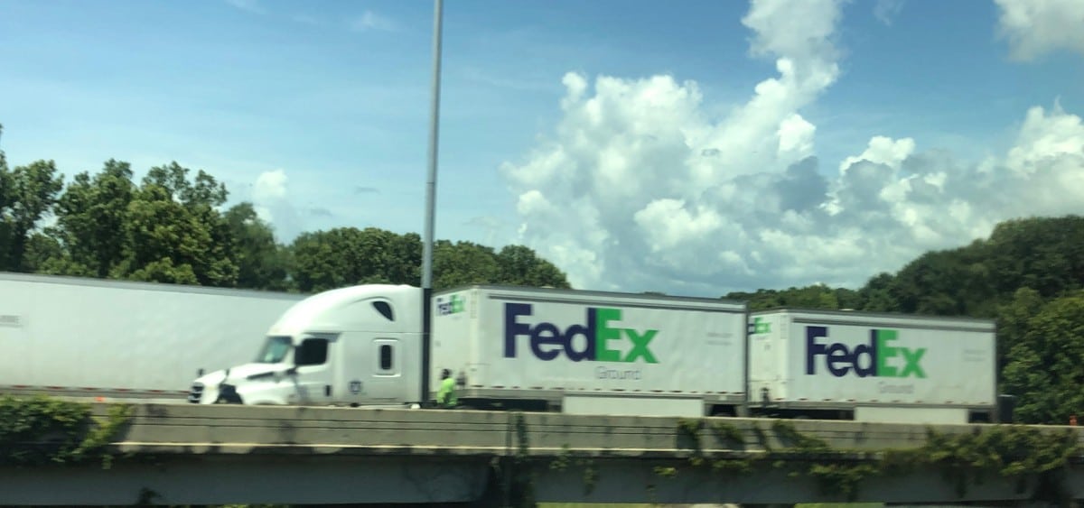 At around 2:08 p.m., a double-trailer FedEx 18-wheeler collided with a concrete barricade.